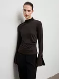 Mango Venus Side Ruffle Flared Sleeve Top, Brown