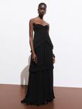 Mango Divi Strappy Ruffle Maxi Dress, Black