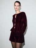Mango Velvet Jacket with Sequins & Bow, Dark Brown