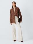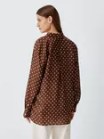 Sangio Polka Dot Pure Silk Shirt, Brown/Cream