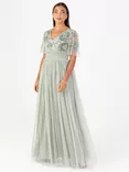 Maya Deluxe Shirred Waist Embellished Maxi Dress, Green Lily