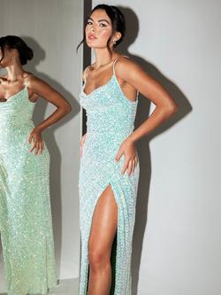 Sequin Cowl Neck Split Maxi Dress