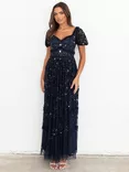 Maya Deluxe Floral Embroidered Maxi Dress, Black/Multi