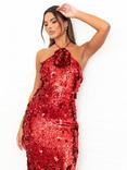 Maya Deluxe Floral Sequin Halterneck Dress, Red