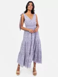 Broderie Tie Shoulder Midaxi Dress, Dusty Lavender
