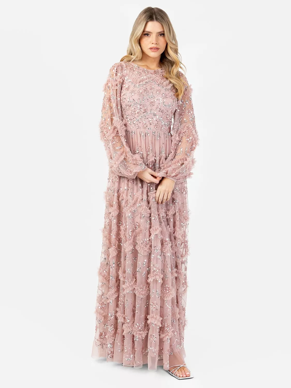 Maya Deluxe Embellished Floral Maxi Dress, Moody Lilac