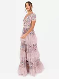 Maya Deluxe Embellished Spot Mesh Maxi Dress, Berry, Berry