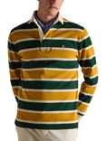 Joules Cotton Striped Rugby Shirt, Green/Gold