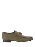 Hugh Eagle Head Herringbone Loafers, Dark Brown