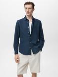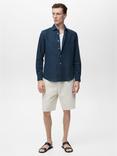 Mango Avispa Linen Cotton Blend Regular Fit Shirt, Navy