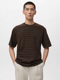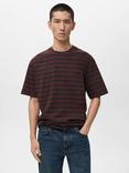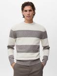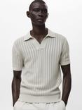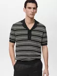Mango Saturno Cotton Blend Regular Fit Striped Open Neck Polo Shirt, Natural White/Black