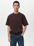 Cotton Regular Fit Short Sleeve Stripe T-Shirt, Dark Red