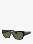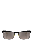 Ray-Ban RB3183 Polarised Rectangular Sunglasses, Black/Grey
