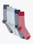 John Lewis Organic Cotton Rich Feeder Stripe Men's Socks, Pack of 5, Black/Blue/Dark Blue/Burgundy/Grey£12.00