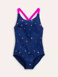 Email when available, Mini Boden Kids' Cross Swimsuit, NavyMini Boden Kids' Cross Swimsuit, Navy£17.00 – £19.00