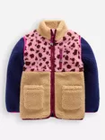 Mini Boden Janie Borg Panelled Jacket, Colour Block/Multi