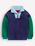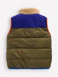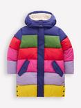 Mini Boden Kids' Borg Collar Puffer Jacket, Blue Patchwork