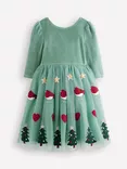 Mini Boden Kids' Velour Tulle Ruffle Party Dress, Rose Pink