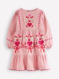 Mini Boden Kids' Posie Cotton Floral Long Sleeve Dress, Pink