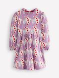 Mini Boden Kids' Lovebird Blouson Sleeve Dress, Purple/Multi