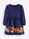Mini Boden Kids' Appliqué Jersey Dress, College Navy Animals