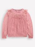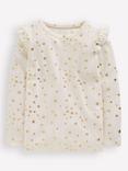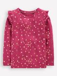 Mini Boden Kids' Star Print Frill Sleeve T-Shirt, Cherry Jam