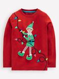 Mini Boden Kids' Cotton Long Sleeve T-Shirt, Mars Red Elf