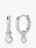 Mini Gem Huggie Drop Earrings, Silver/White Topaz