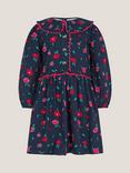 Monsoon Kids' Cotton Long Sleeved Floral Print Dress, Navy