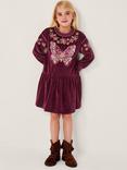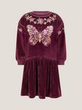 Monsoon Kids' Velour Long Sleeved Sequin Butterfly Dress, Burgundy