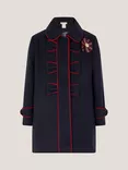 Monsoon Kids' Contrast Piped Bow Coat, Navy