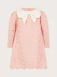 Email when available, Monsoon Baby Foil Bow Collar Dress, PinkMonsoon Baby Foil Bow Collar Dress, Pink£28.00