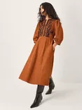 Leah Embroidered Corduroy Midi Dress, Copper
