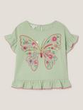 Monsoon Kids' Cotton Butterfly Embellished T-Shirt, Green