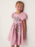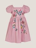 Monsoon Kids' Corduroy Embroidered Smocked Dress, Pink