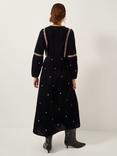Monsoon Sicily Embroidered Floral Midi Dress, Navy