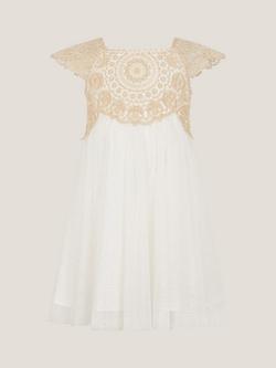 Email when available, Monsoon Baby Estella Embroidered Bodice Party Dress, Gold MonsoonBaby Estella Embroidered Bodice Party Dress, Gold£45.00