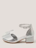 Kids' Diamanté Bow Metallic Two-Part Heels, Silver