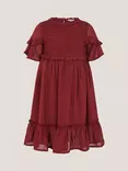 Kids' Short Sleeved Frilly Dress, Burgundy