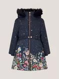 Monsoon Kids' Starry Floral Hooded Coat, Navy