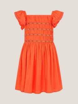 Kids' Floral Embroidered Square Neck Dress, Orange
