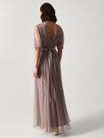 Monsoon Delia Devore Mix Midi Dress, Chocolate
