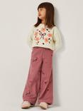 Monsoon Kids' Cable Knit Wide Leg Trousers, Pink
