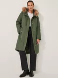 Monsoon Paula Faux Fur Parka Coat, Khaki