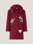 Monsoon Kids' Boucle Floral Embroidered Coat, Burgundy