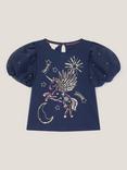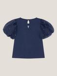 Monsoon Kids' Floral Broderie Puff Sleeve Dress, Black