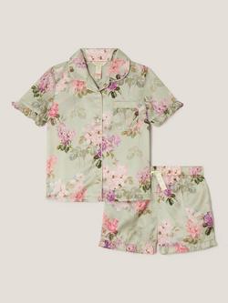 Kids' Floral Satin Long Pyjama and Eye Mask Set, Multi