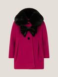Monsoon Baby Velvet Bow Faux Fur Coat, Pink