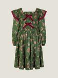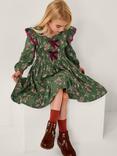 Monsoon Kids' Long Sleeved Butterfly and Floral Print Dress, Green