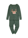 MORI Kids' Reindeer Print Long Pyjama Set, Pine/Multi